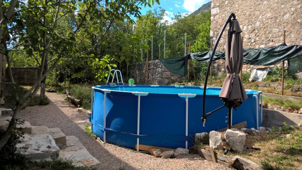native entièrement meublé de sedmerosobna (construit en 1884). maison climatisée pour 10 personnes. 1 appartement avec une entrée privée de la cour pour 2 personnes, 1 chambre avec une entrée privée de la cour pour 2 personnes, 2 chambres pour 3 personnes, salle à manger, 2 cuisines, barbecue, 2 verges, le quatrième 80x120 piscine, gazebo, parking pour plusieurs voitures . Parking pour bateau ou un yacht. sport de riches, des installations récréatives et culturelles dans la vallée. château Frankopan à quelques centaines de mètres de la maison. vallées calme et verdoyant. Si vous aimez l'environnement naturel et êtes à la recherche de la paix et de la santé vallée est idéal dans les mois de printemps, été et automne. Animaux acceptés sans supplément. Cours fermées par hauts murs de pierre qui permet la vie privée.