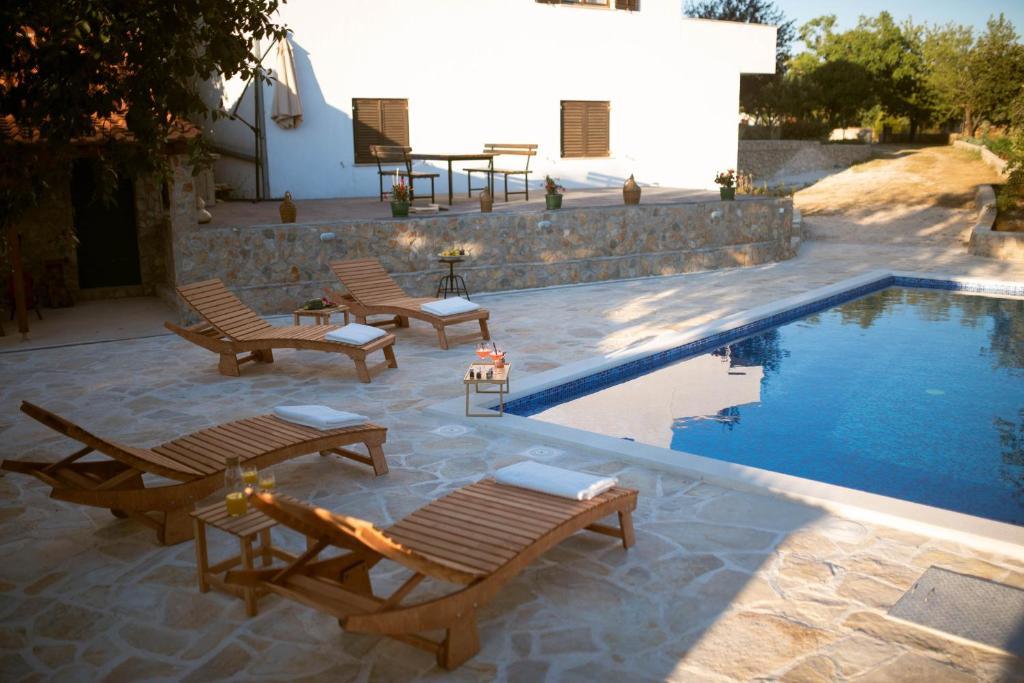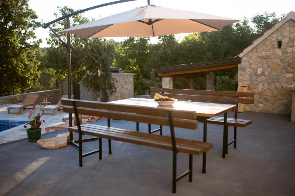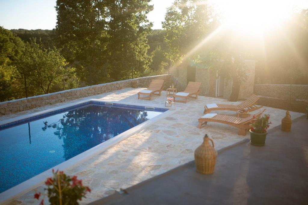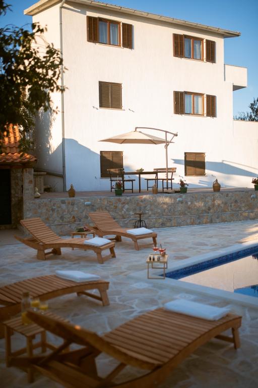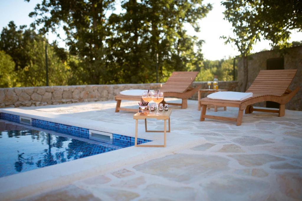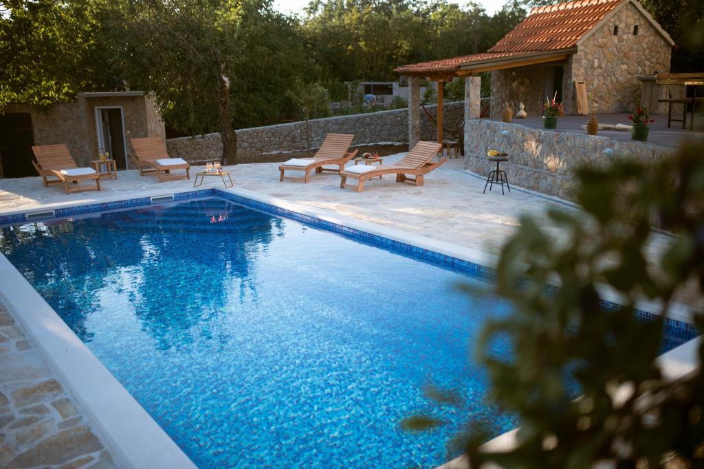 En plus de l'hébergement, les hôtes peuvent profiter des produits locaux de saison du jardin, tels que cerises, fraises, griottes, pommes, poires, prunes, romarin, etc. La maison de vacances « Perle dans la Pierre » est située dans la charmante petite ville de Gornji Vinjani et offre un grand jardin, le calme, une piscine privée et une vue sur le jardin et la forêt. Elle dispose de 4 chambres, d'une télévision avec de nombreuses chaînes, de la climatisation et d'une connexion Wi-Fi gratuite. La cuisine est entièrement équipée avec lave-vaisselle et réfrigérateur, lave-linge et salle de bains avec douche et buanderie. La maison propose une piscine extérieure chauffée de 9 x 4 m (ouverte en saison) avec une cabane de jeux et des animations, ainsi qu'un barbecue. Les hôtes peuvent se détendre dans le magnifique jardin pa