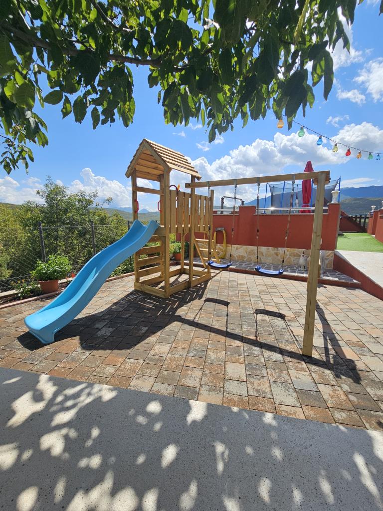 Cette spacieuse maison de vacances offrira un plaisir et une détente complets à 12 personnes. Grand jardin avec une piscine chauffée de 7x4 mètres avec massage eau et air pour le plaisir et la détente. À côté de la piscine se trouve une cuisine d'été avec une salle à manger et une salle de bain, qui comprend également un barbecue extérieur. Chaque appartement dispose de 3 chambres, de 2 salles de bains, de cuisines entièrement équipées, de salons spacieux avec téléviseurs intelligents et de balcons donnant sur la piscine et le mont Biokovo. L'offre comprend un trampoline pour les plus jeunes, un barbecue intérieur, 5 places de parking et une grande terrasse. L'unicité de cette propriété réside dans le fait que la maison est située dans une zone isolée, vous pouvez donc être sûr que vous profiterez d'une intimité totale. L'emplacement de la maison est excellent car elle se trouve à 25 minutes en voiture de la mer Adriatique, à 10 minutes en voiture des commerces, cafés et restaurants. Les villes de Makarska, Imotski, Split, Omiš, Međugorje, Makarska et d'autres endroits attrayants se trouvent à moins de 20 minutes à 1 heure de route de chez nous. L'entrée de l'autoroute est à 9 km.