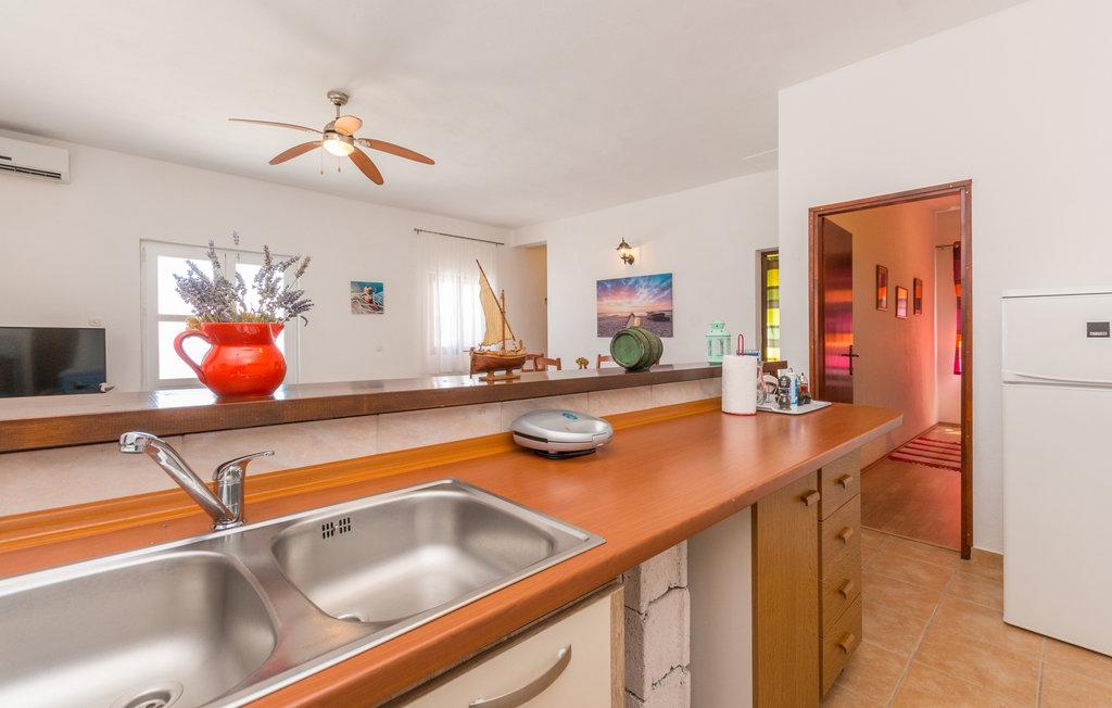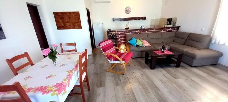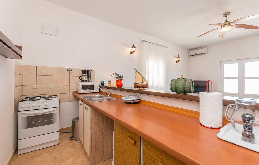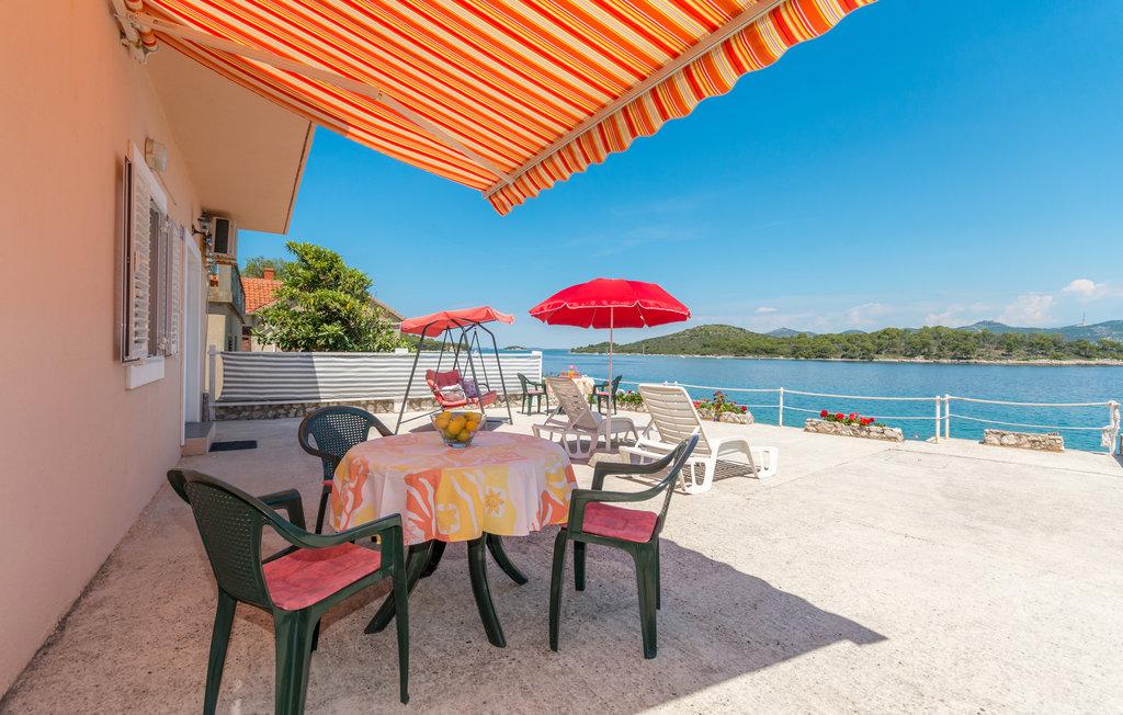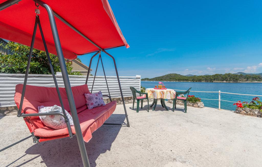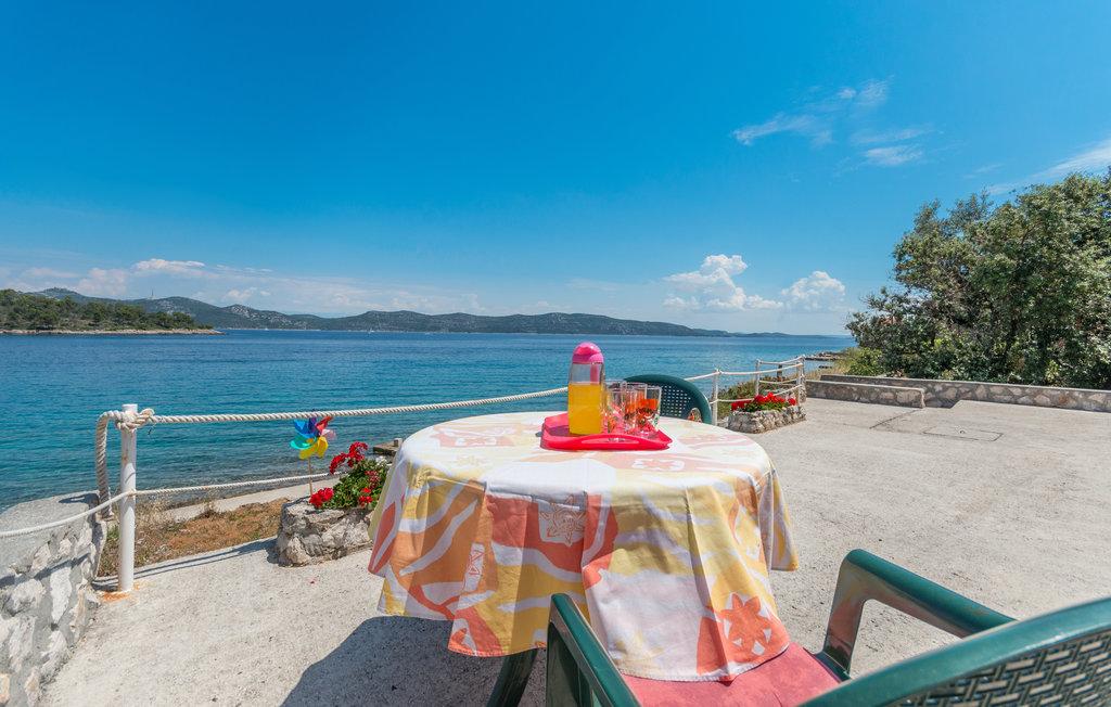Une terrasse spacieuse, équipée de transats confortables et de parasols offrant une vue imprenable sur la mer, vous invite à passer des vacances inoubliables. Détendez-vous en famille dans ce charmant hébergement. Située dans le chenal central entre Ugljan et Dugi Otok, Mali Iž est entourée d'îlots. Des liaisons par ferry et bateau permettent un accès rapide. Les restaurants proposent d'excellents vins locaux et une délicieuse cuisine dalmate. La maison de vacances se compose d'une grande pièce à vivre ouverte comprenant salon, cuisine et salle à manger, deux chambres et une salle de bains. L'une des chambres est équipée d'un lit double (160 x 200 cm) et l'autre d'un lit superposé (90 x 200 cm). La maison dispose d'une grande terrasse avec vue sur la mer, à seulement 10 mètres du rivage. Un barbecue et une cheminée sont à votre disposition à proximité. Un parking gratuit est disponible sur un parking public près de l'hébergement.