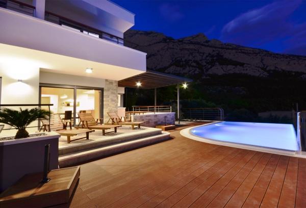 Villa Blue View, SPLIT - Nombre de personnes: 8 - Chambres à coucher: 4 - Salle de bain: 5 - Piscine De € 355 / nuit Bienvenue à la Villa Blue View! Situé sur une position tranquille, surélevée sur les pentes d'un flanc de montagne près d'une plage de galets à Makarska, une charmante ville dans la région de Split, cette villa de luxe privée à louer avec une piscine infinie est le choix idéal pour vos vacances d'été en Croatie. La villa a une belle vue sur la mer avec vue sur l'ensemble de Makarska et l'île de Brac sur la mer Adriatique. La villa est neuve et moderne maisons conçues ainsi comme l'une des plus belles villas de luxe sur la côte croate milieu Dalmatien à Makarska. Avec spacieuse 4 chambres et 5 salles de bain, Villa Blue View est votre maison d'été de luxe et un hébergement confortable pour 8 personnes, idéal pour les familles avec enfants et pour les petits groupes. Web www.croatianmediterraneanvillas.com