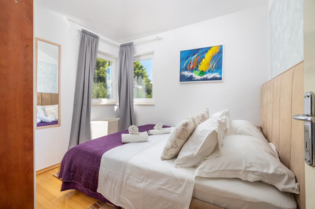 Villa très bien équipée avec piscine et jacuzzi. Une cuisine bien équipée dans le séjour au premier étage : deux grands frigos, assiettes, verres, verres, mixeur, mixeur, râpe, il ne manquait vraiment rien. Une grande terrasse surplombant la mer, où vous pourrez vous installer confortablement le soir. Deux salles de bain à l'étage, un WC au premier étage et une autre salle de bain au rez-de-chaussée est un gros plus pour un grand nombre de vacanciers. Belles plages climatiques à proximité. Aux commerces à environ 1 km, aux restaurants à environ 1 km ou 2 km. Pour Omiś marcher dans un cadre magnifique à environ 4 km. Une chambre sans fenêtre, dont nous ne savions pas très bien, nous avons eu un mauvais lit, mais je pense que le propriétaire pensera à le remplacer. Dans l'ensemble, tout le groupe a été très satisfait du séjour et nous recommandons chaleureusement ce siège.