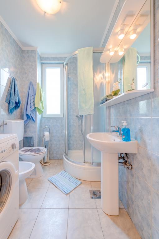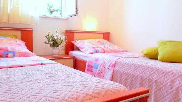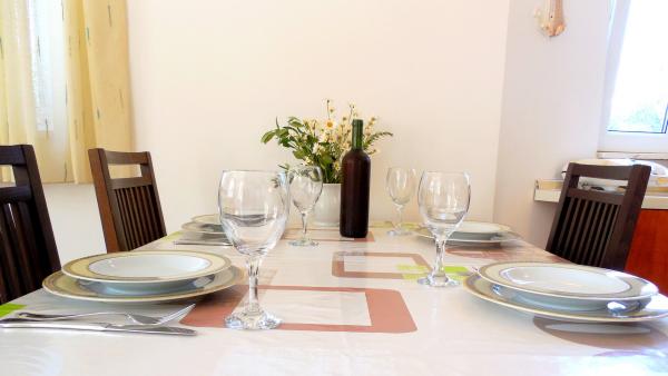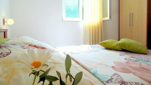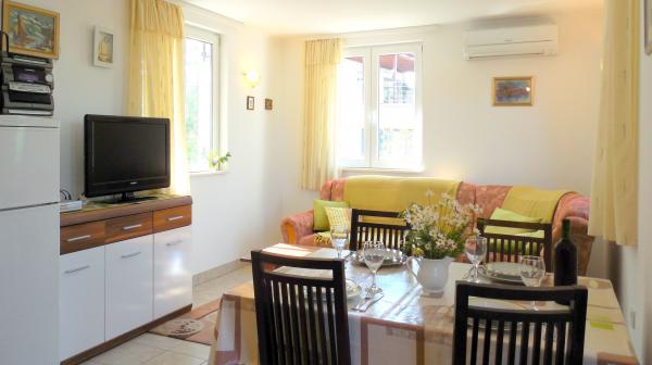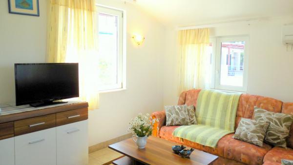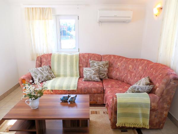 Cette belle villa ensoleillée de deux appartements vous invite chaleureusement à profiter de vos vacances. Les deux appartements s'étendent sur 57 m² de magnifiques villas blanches au bord de la mer. Dans la maison de vacances joliment décorée, vous trouverez deux chambres avec lit double et deux chambres avec deux lits séparés. Le salon est décloisonné, avec un coin repas, un grand canapé-lit pour une personne supplémentaire, une télévision par satellite et une chaîne hi-fi et mène directement à la terrasse meublée: un bel endroit tranquille et ombragé pendant les chaudes journées d’été. La cuisine entièrement équipée a tout ce qu'il faut pour vous donner, à vous et à votre famille, le plaisir de cuisiner. La salle de bain comprend une douche, des toilettes, un bidet et un lave-linge. Vila Sunray est loué seulement en totalité. Ces prix sont pour toute la maison, à savoir A1 et A2 ensemble.