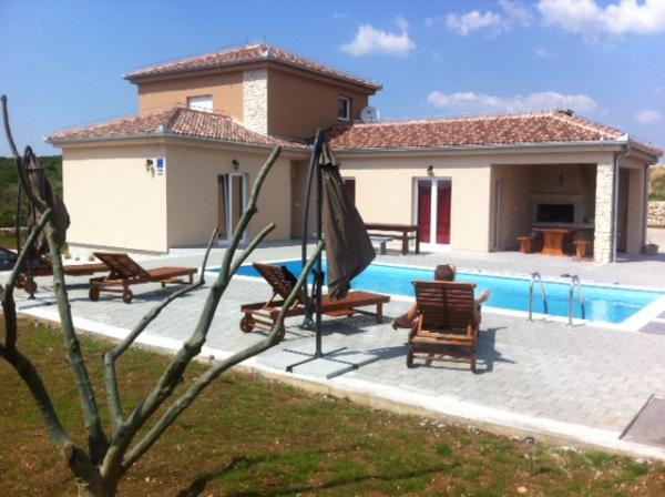 Maison moderne et confortable vacances se trouve dans l'arrière-pays de Sukosan, à seulement 4 km de la plage la plus proche, des restaurants et des événements touristiques. Il se compose de 4 chambres, 4 salles de bains, WC, cuisine reliée avec la salle de séjour. Du salon à la terrasse avec un barbecue couvert et une piscine de 32 m2
