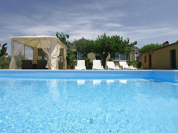 La famille de la maison 3 pièces 100 m2 avec maison barbecue, grand jardin avec pelouse et arbres de 1600 m2 et une piscine chauffée mesure 7 x 4 x 1,5 m. Parking près de la maison piscine. Proximité des commerces et des restaurants à 300 m, et la plage de sable et de galets 800 m.