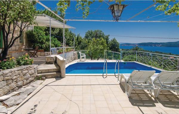 La maison est située à Viganj sur la péninsule de Peljesac. Devant la maison se trouve une grande terrasse avec une vue magnifique sur l'île de Korcula. Vous trouverez également sur la terrasse une piscine exclusivement à votre disposition. La maison se compose de 4 chambres, 3 salles de bain, cuisine et salle à manger et un grand salon situé dans le grenier. La maison a son propre parking privé. L'environnement de la maison, de plus de 1000 m2, se compose d'un verger d'oranges, de citrons, de vignes et de grenades. La paix, la tranquillité et le chant des oiseaux vous garantissent un repos agréable et une détente du quotidien. Il dort parfaitement dans cette maison, rêve bien et se repose plus belle.
