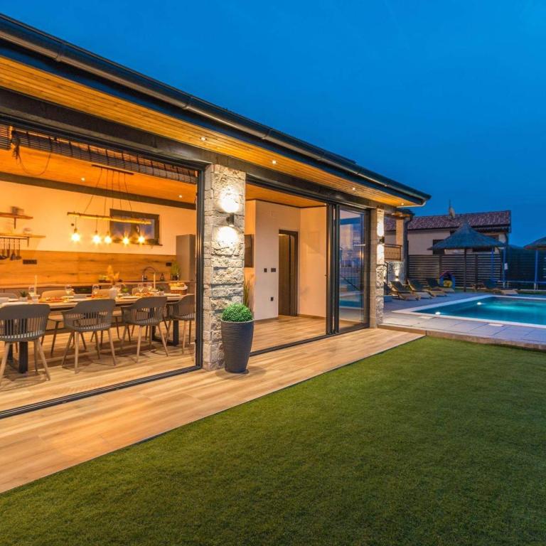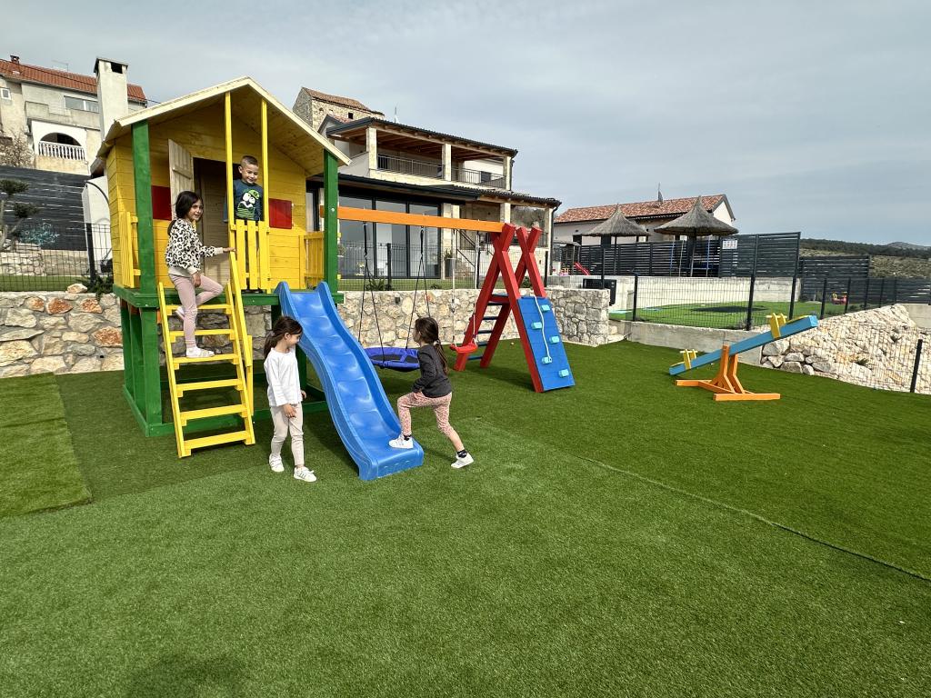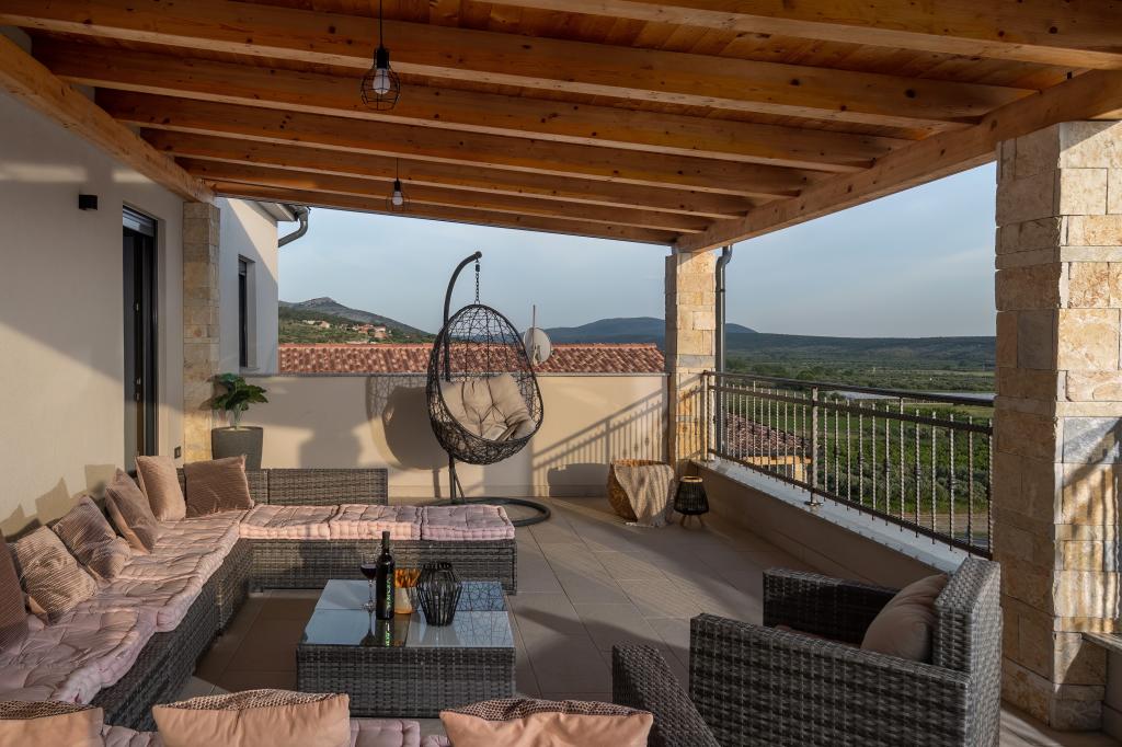 Nichée dans un cadre idyllique à proximité du parc naturel du lac de Vrana, la Villa La Vrana vous séduira par sa vue imprenable sur le lac et la mer. D'une superficie de 130 m², elle peut accueillir jusqu'à 8 personnes dans 3 chambres à la décoration moderne. Au premier étage, vous trouverez 2 chambres et une salle de bains avec baignoire. Au rez-de-chaussée, un salon élégamment décoré offre une vue magnifique sur les environs, ainsi qu'une cuisine moderne et entièrement équipée avec coin repas. Le salon est doté d'un canapé-lit pouvant accueillir 2 personnes supplémentaires. On y trouve également une chambre avec un lit double et une salle de bains avec douche. Dans la cour de la villa, une piscine de 8 x 4 m est chauffée en basse et basse saison. Transats et serviettes de piscine sont à votre disposition. Un parking gratuit, une borne de recharge pour véhicules électriques et une grande aire de jeux pour enfants sont également disponibles sur place. À côté de la villa, vous pourrez vous détendre et préparer de délicieux repas dans la cuisine d'été entièrement équipée d'un barbecue.